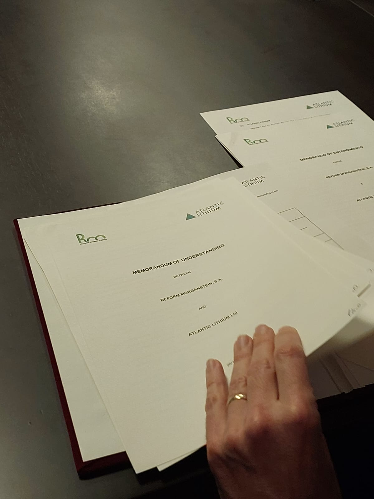 No passado dia 26 de Outubro de 2023, procedeu-se assinatura de Memorando de Entendimento entre a Reform Morganstein Prestação de Serviços, S.A., e Australiana Atlântica Lithium, com o objectivo de desenvolver um Projecto de Prospeção e Exploração de LITHIUM, numa área de 220 Km2 situada na localidade do Virei/ Bibala, Província do Namibe.